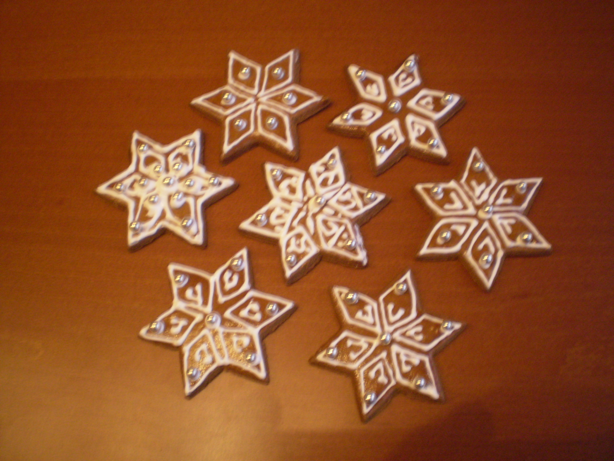 Váš oblúbený recept na medovníčky použite na ich prípravu. Potom si zhotovte bielkový sneh a ozdobte ich. Potrebujete troška trpezlivosti a praxe.